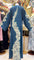 This exquisite teal-colored abaya showcases a stunning floral lace embroidery that gracefully runs diagonally from the back neckline down to the hem. The intricate lace pattern is complemented with delicate beadwork and floral designs featuring soft blue and cream hues. Embellishments extend onto the wide, flowy sleeves, adding to the sophisticated and elegant look. Crafted from lightweight fabric, this abaya offers comfort while making a timeless fashion statement, perfect for formal occasions or special events.